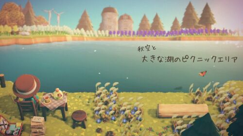 【あつまれどうぶつの森】で作る大きな湖とピクニックエリアの紹介をしています。